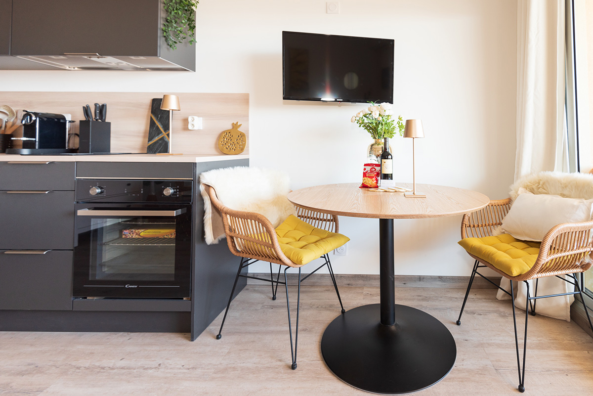 - De keuken is uitgerust met onder andere een vaatwasser, oven, koelkast, magnetron, inductiekookplaat, wasmachine en een nespresso apparaat