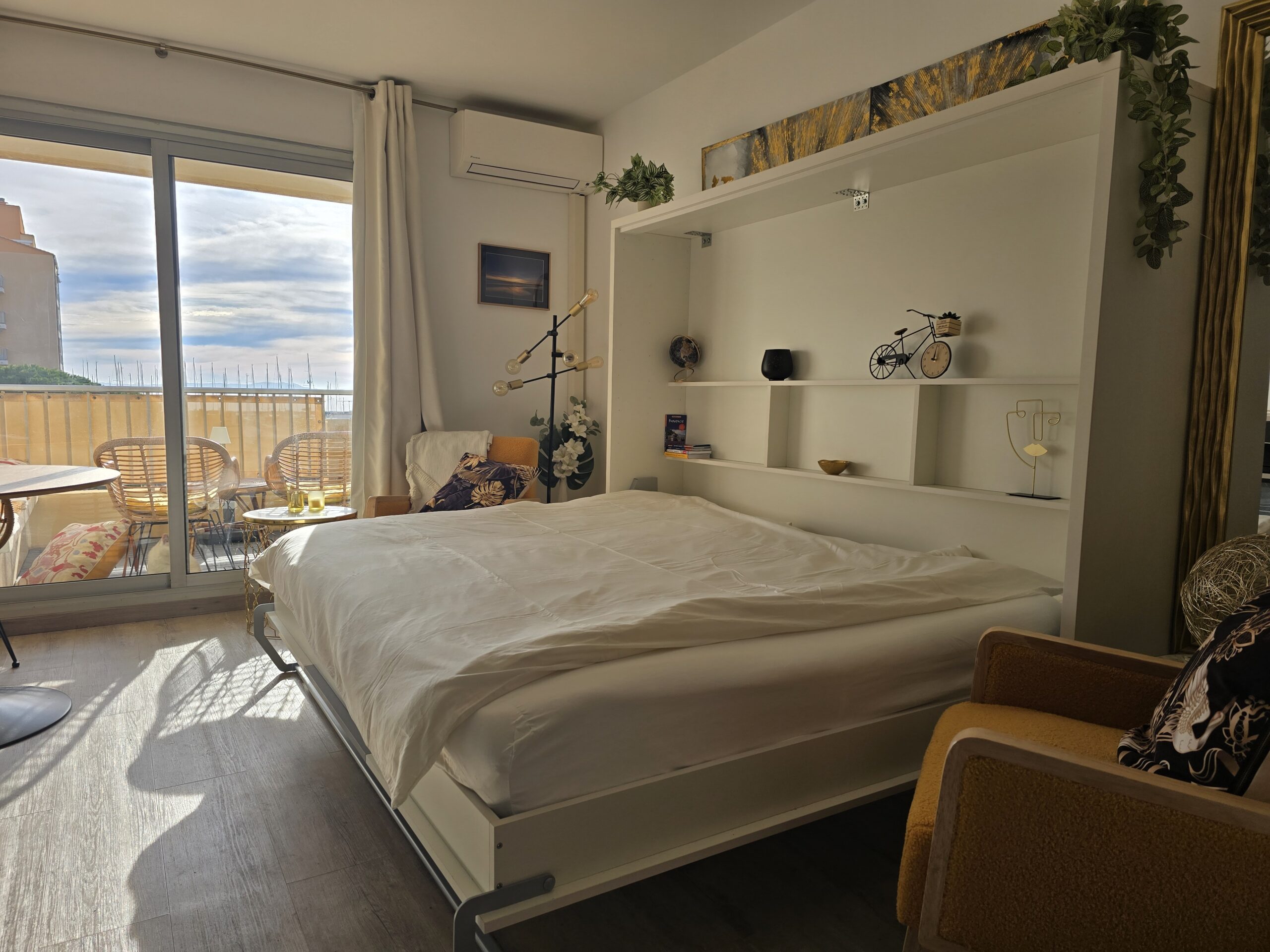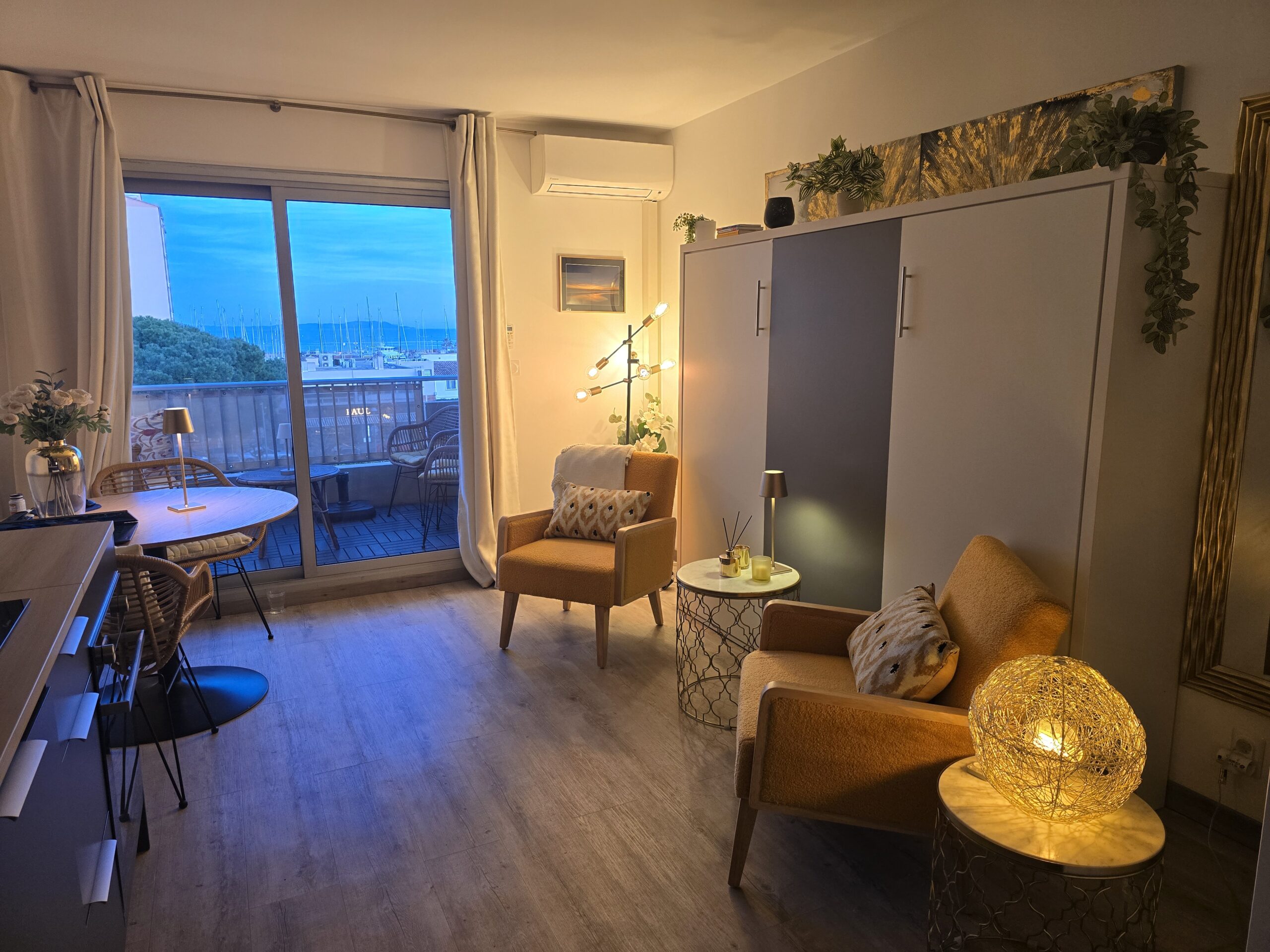De Studio bevindt zich In Port d’Hyères / Hyères-Plage voor 2 personen. Met uitzicht op de Mediterranee en de eilanden Port Cros en Porquerolles. Op loopafstand van de boulevard, vele restaurantjes, de jachthaven en stranden. Met op zondag een grote wekelijkse markt aan de haven en op zaterdag een grote markt in het centrum van het mooie Hyères.